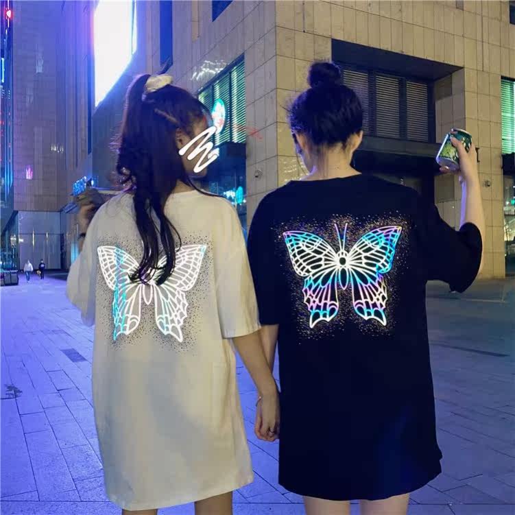 Tide lovers fitted with new blouses undercoat missing BFT-shirt short sleeve t-shirt female summer dress luminous loose medium long version