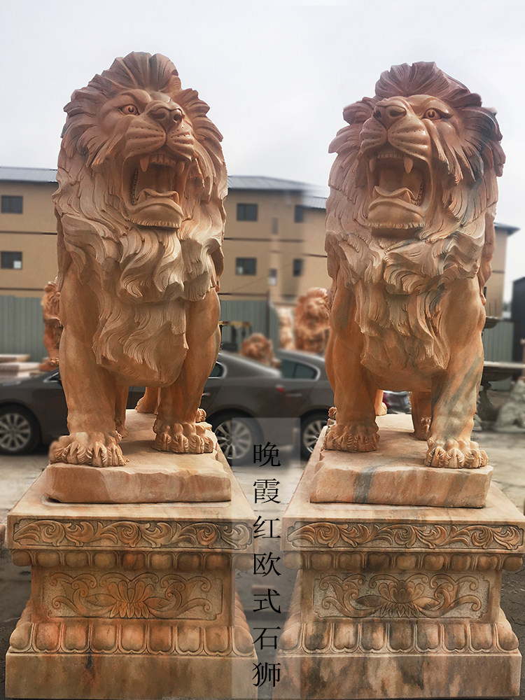 Large animal stone carving European-style climbing lion stone carving lion pair of white marble bluestone walking lion sunset red squatting lion door