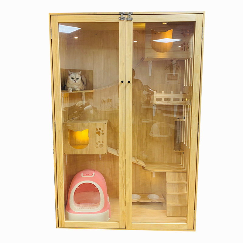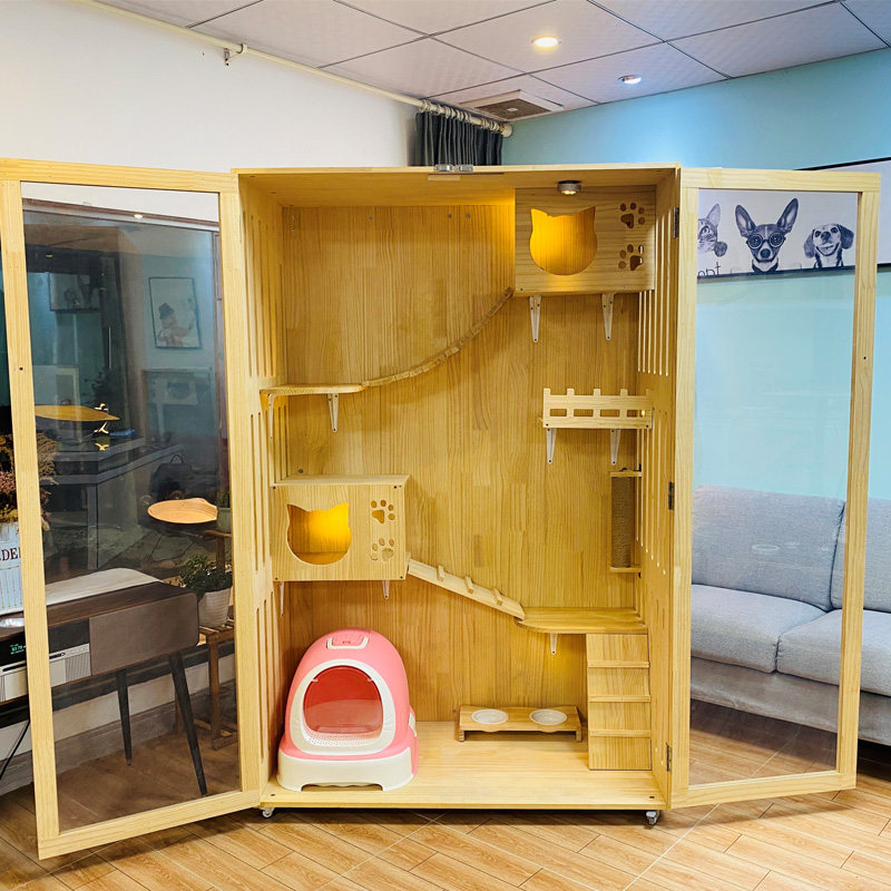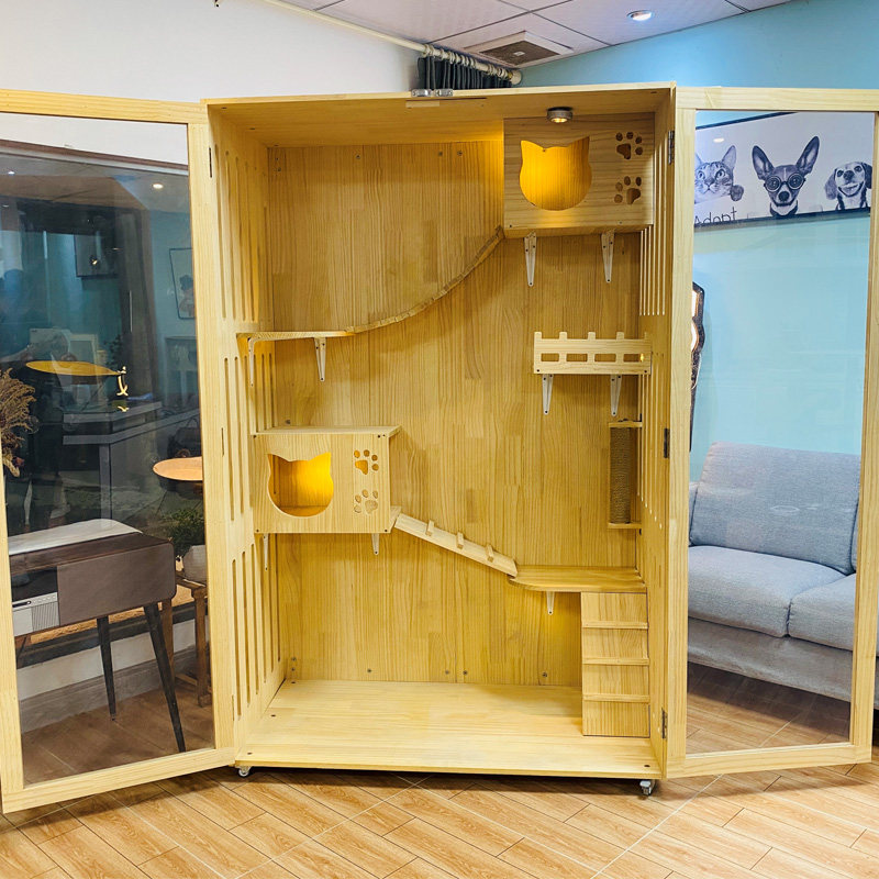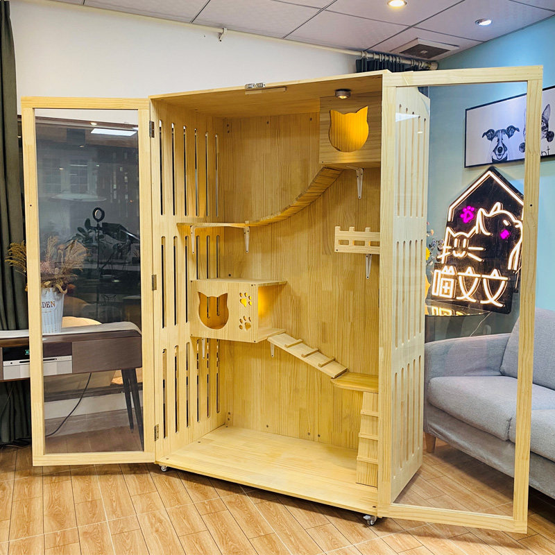 Cat villa solid wood large luxury cat house Cat cage Cat hotel cat display cabinet Three-layer cat nest Cat breeding cage