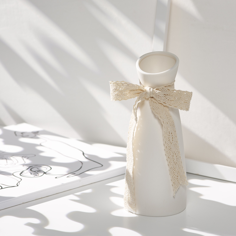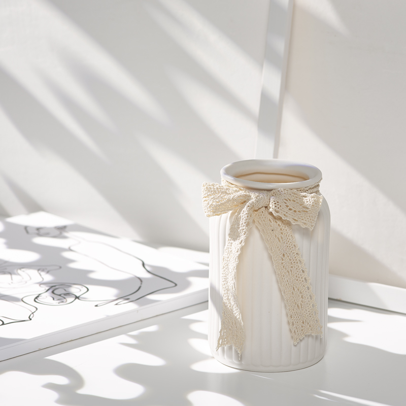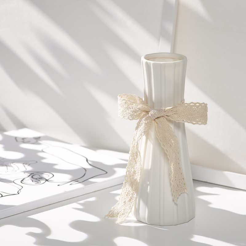 Nordic white dry flower vase ceramic simple creative modern living room study flower arrangement hydroponic home decoration ornaments