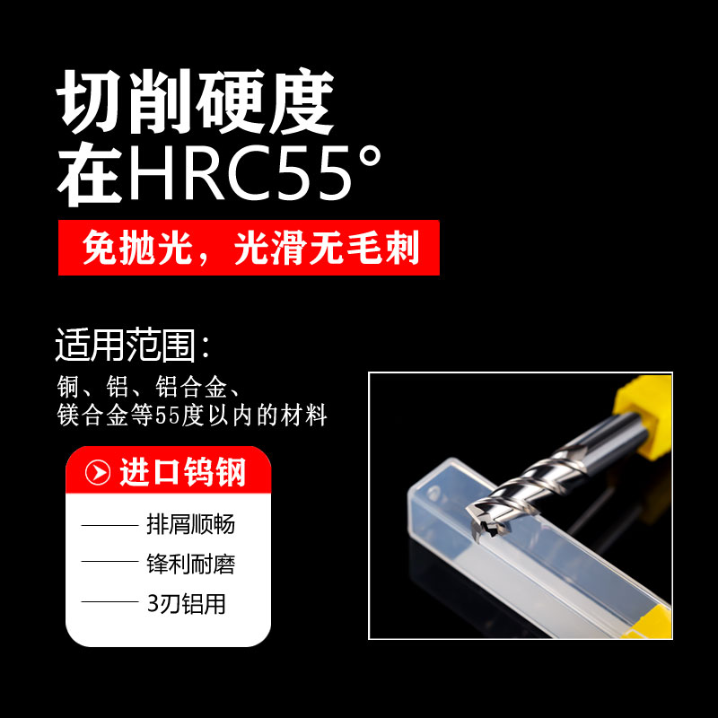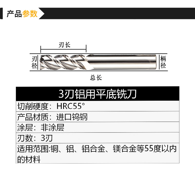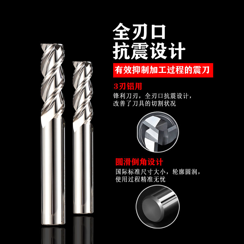 55 degree aluminum alloy special tungsten steel milling cutter CNC cnc high-gloss high-brightness mirror alloy special three-edged 3-end mill