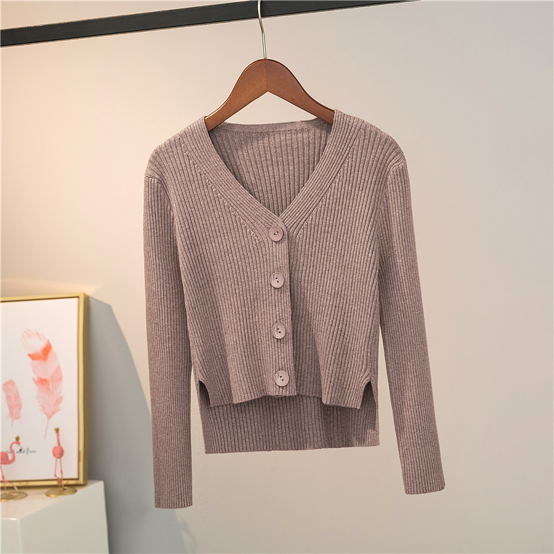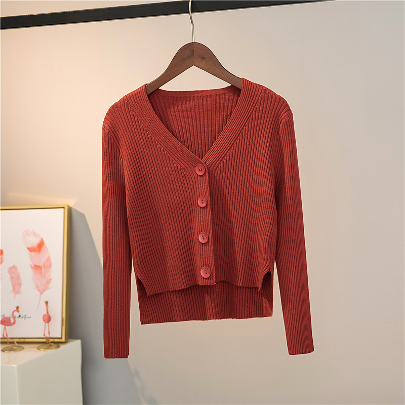 Spring Autumn Loose short section High waist Outer lapped mesh red-knit cardiovert sweatshirt Spring-style sweater jacket Spring dress jacket for women
