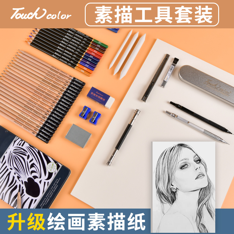 touchcolor sketch pencil primary school professional hand-drawn sketch color pencil set children 2b4b water-soluble color pencil 72-color art student special drawing brush 2h mechanical pencil 0