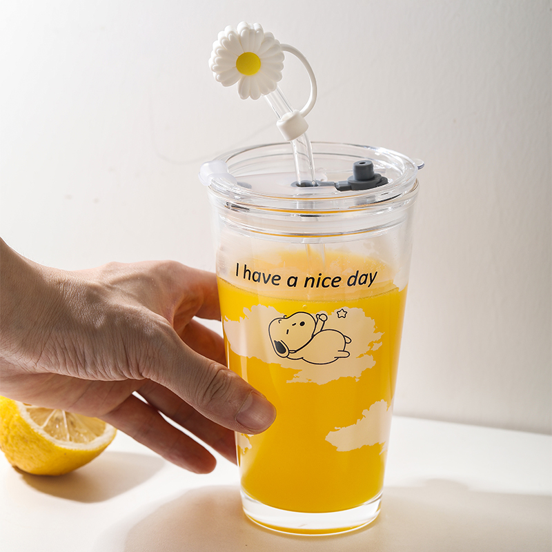 Light cup lid glass straw with no-two home cover glass straw small head Milk girl cover glass straw graffiti cover glass straw Snubiet lid glass straw Flow Star Rain cover glass