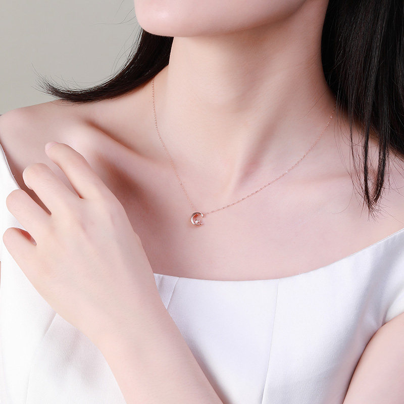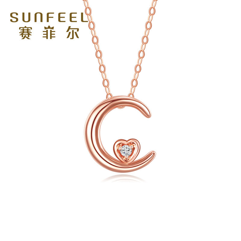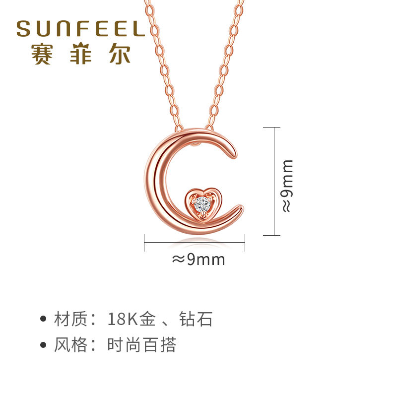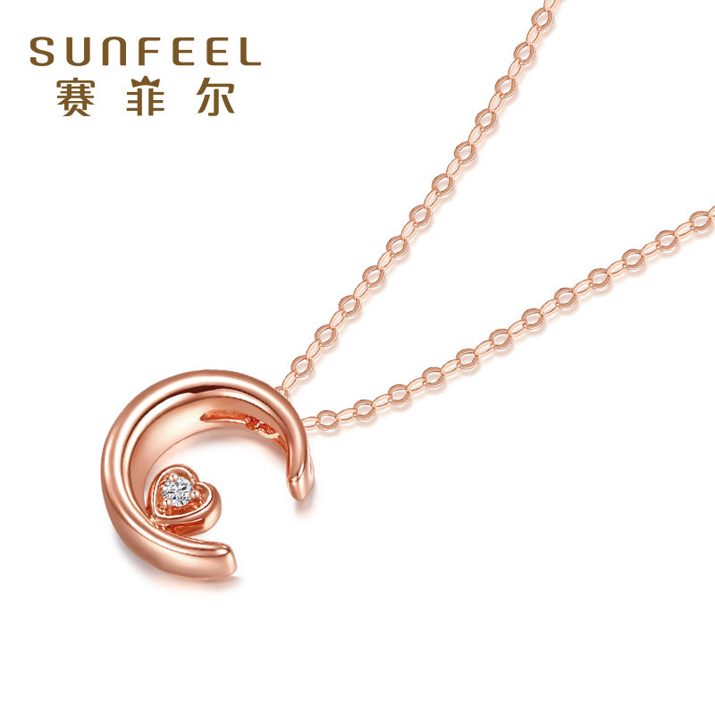 Saifir 18K rose gold diamond pendant Au750 moon pendant fashion simple and versatile female gift