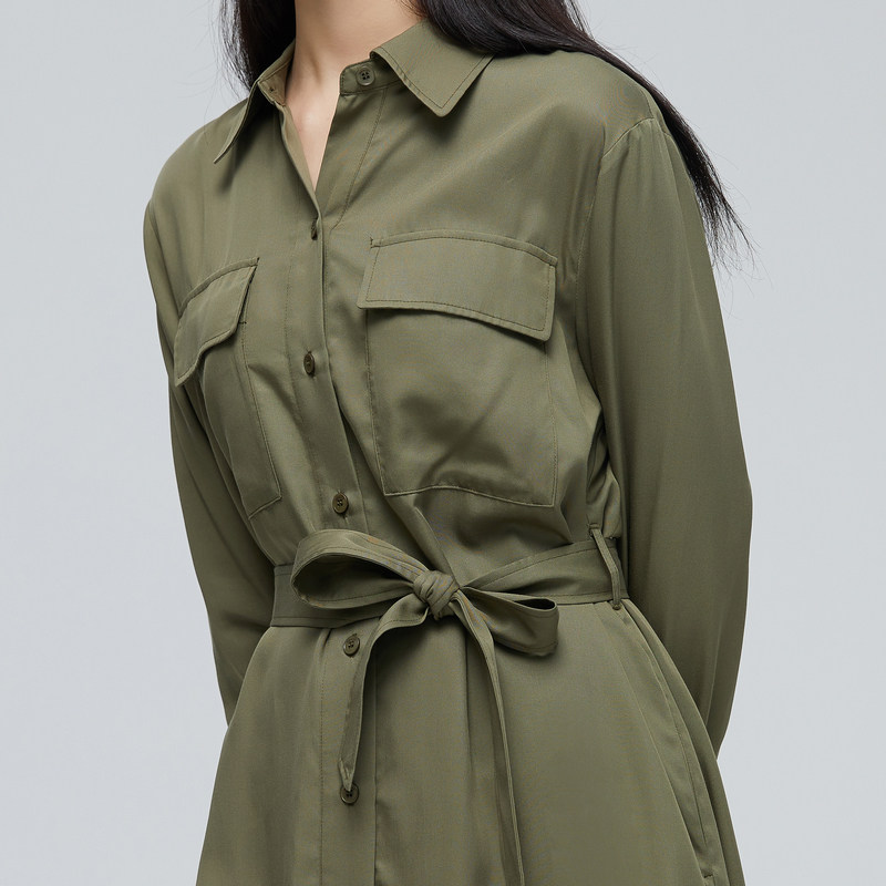 MECITY women's clothing fall minimalist Korean version of the lace collection waist shirt with long version of the square collar dress 544816