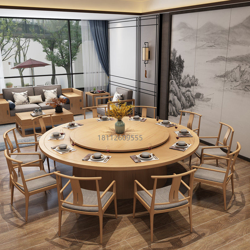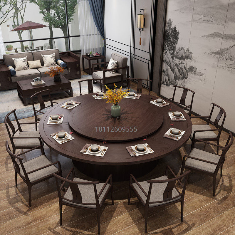 Hotel new Chinese electric solid wood large round table dining table automatic turntable hot pot table hotel club box custom cc