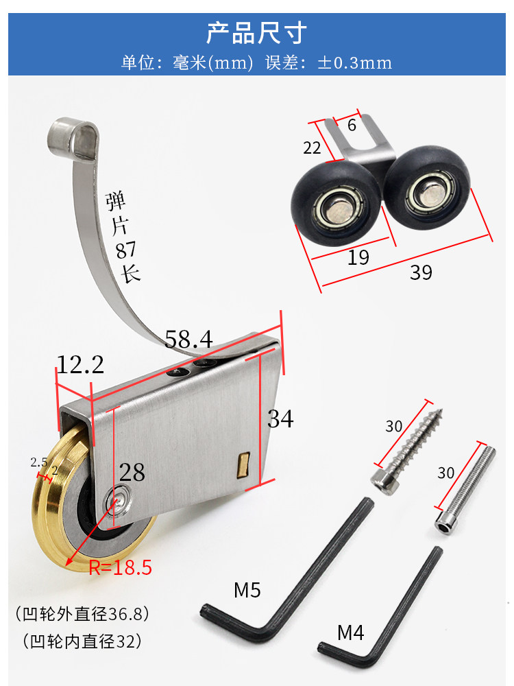 Wardrobe sliding door pulley concave and convex stainless steel brass wheel bathroom glass sliding door rail up and down roller lifting wheel accessories
