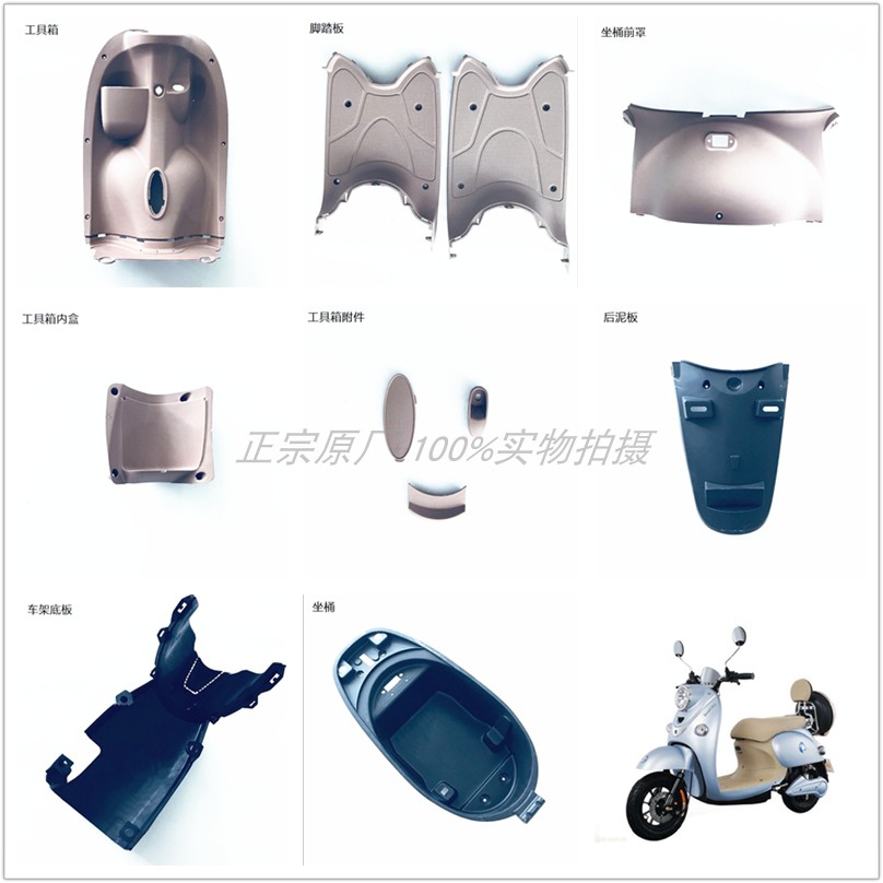 Front panel front mud plate front and rear left and right middle side strip left and right decorative plate left and right flat fork guard rear connection block tool box tool box inner box tool box accessories foot pedal seat bucket front cover frame bottom plate rear mud plate living room lamp
