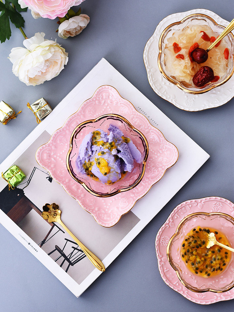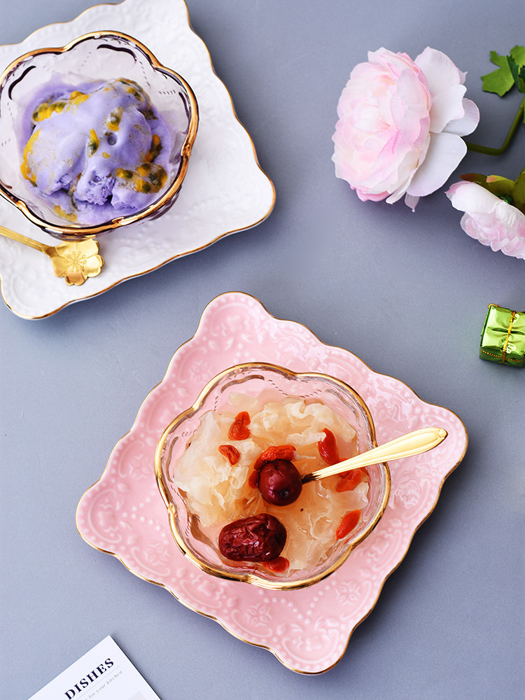 Creative Japanese Phnom Penh cherry blossom glass bowl Bird's nest bowl Dessert bowl tableware Ice cream bowl Sugar water yogurt bowl Salad bowl