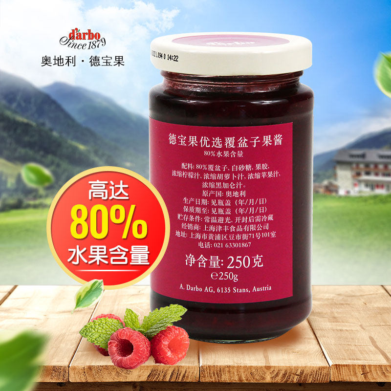 (Imported)Austria Debao Fruit Preferred raspberry jam 250g Visible pulp 80%pulp
