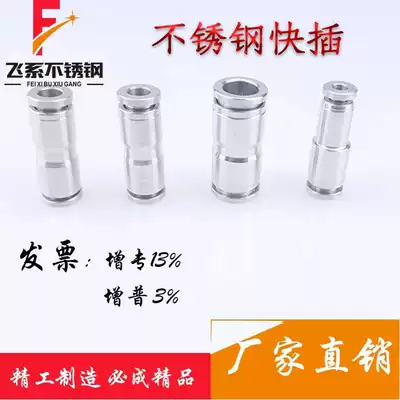 304 316 stainless steel quick plug straight through intermediate connector air hose hose plug plug double head PU quick connector
