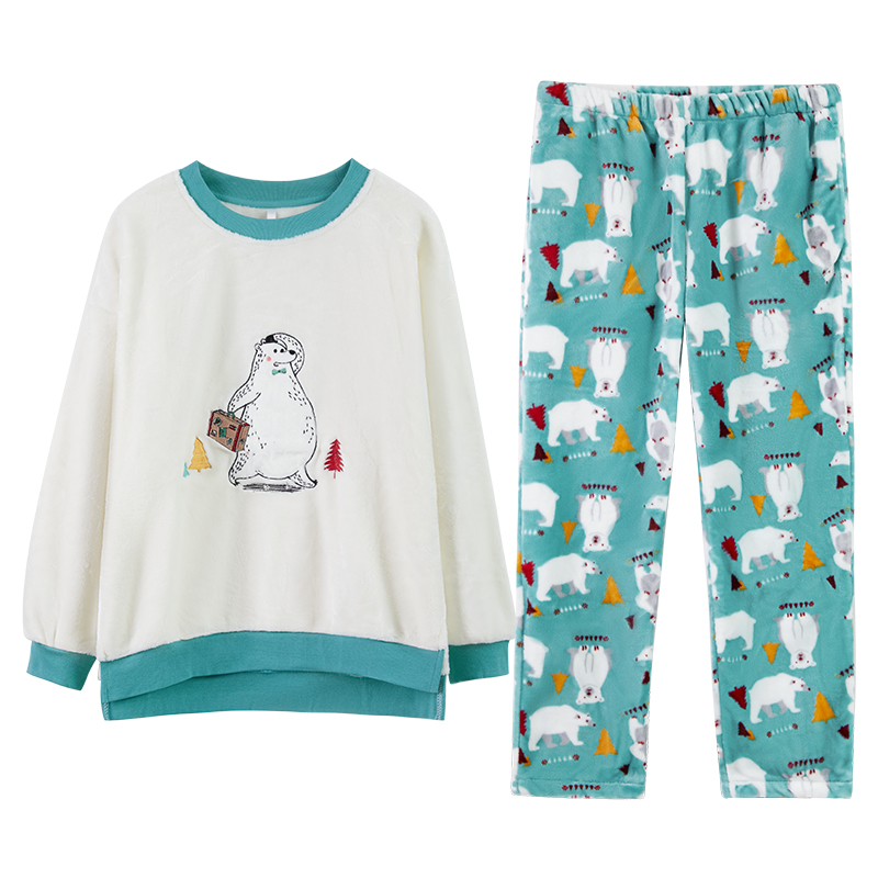 Red bean women flannel home clothes pullover set cute coral velvet pajamas Autumn and winter girl cartoon printing set
