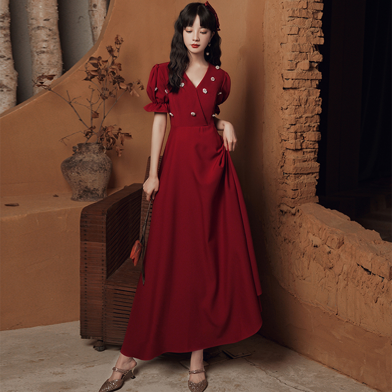 Pregnant Woman Toast Bride 2022 New Summer Red Wedding Gown Engagement Foreign Dress Woman Great Size High Sense