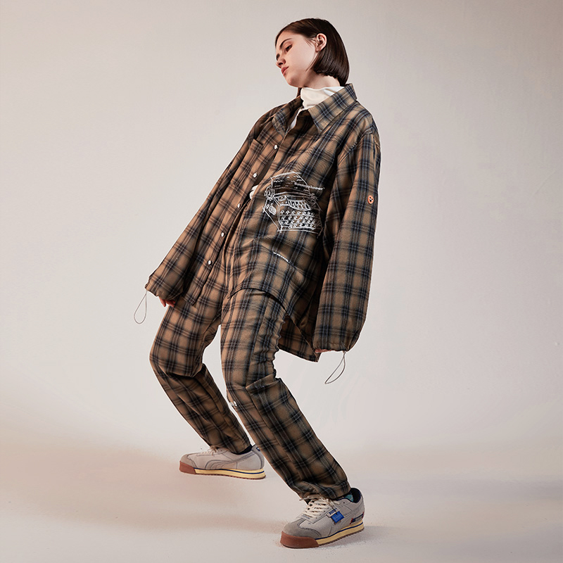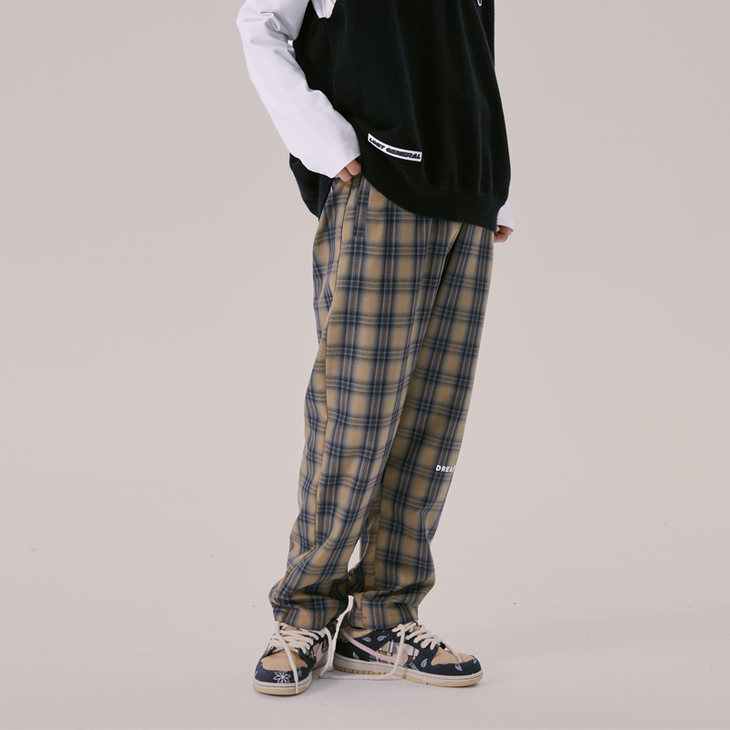 benmyshower State Tide Gge Line Casual Pants Male Tide Card Retro Plaid Pants Loose Couple Straight Barrel Wide Pants