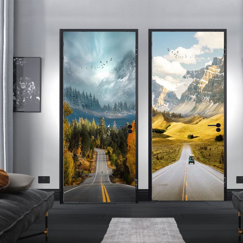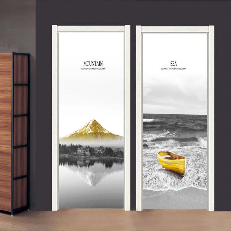 Nordic Style Marine Road Scenery Creative Waterproof Makeup Room Door Door stickers Self-glued Wooden Door Renovated