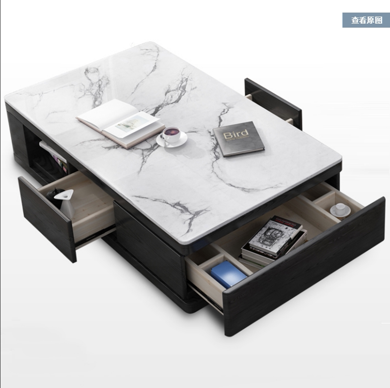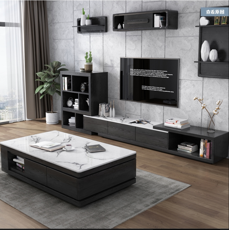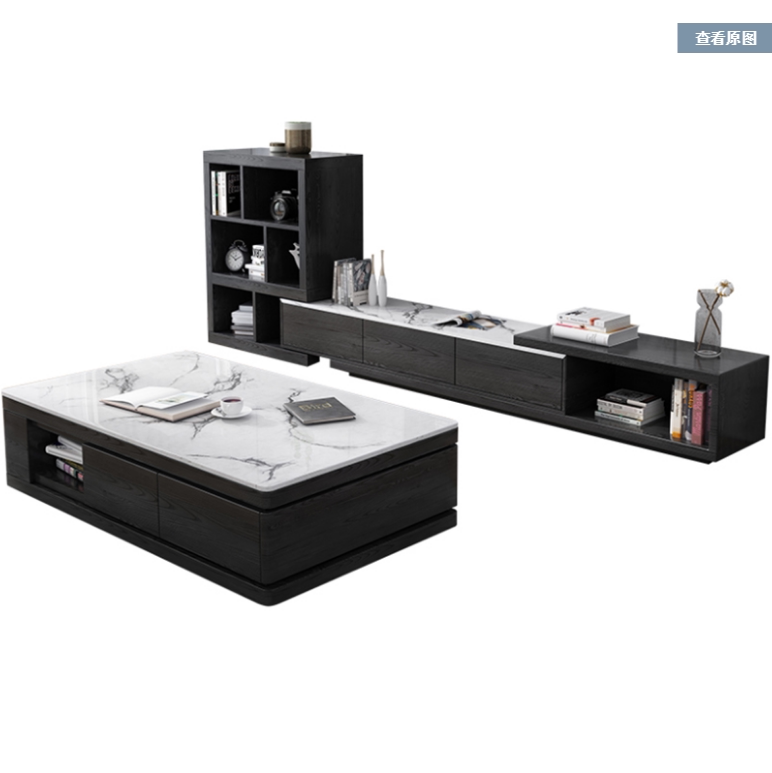 New Nordic marble coffee table TV cabinet retractable living room simple modern tea table floor cabinet set combination