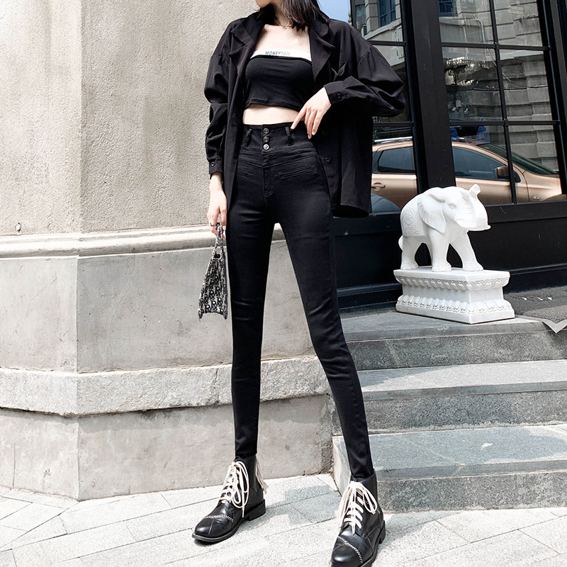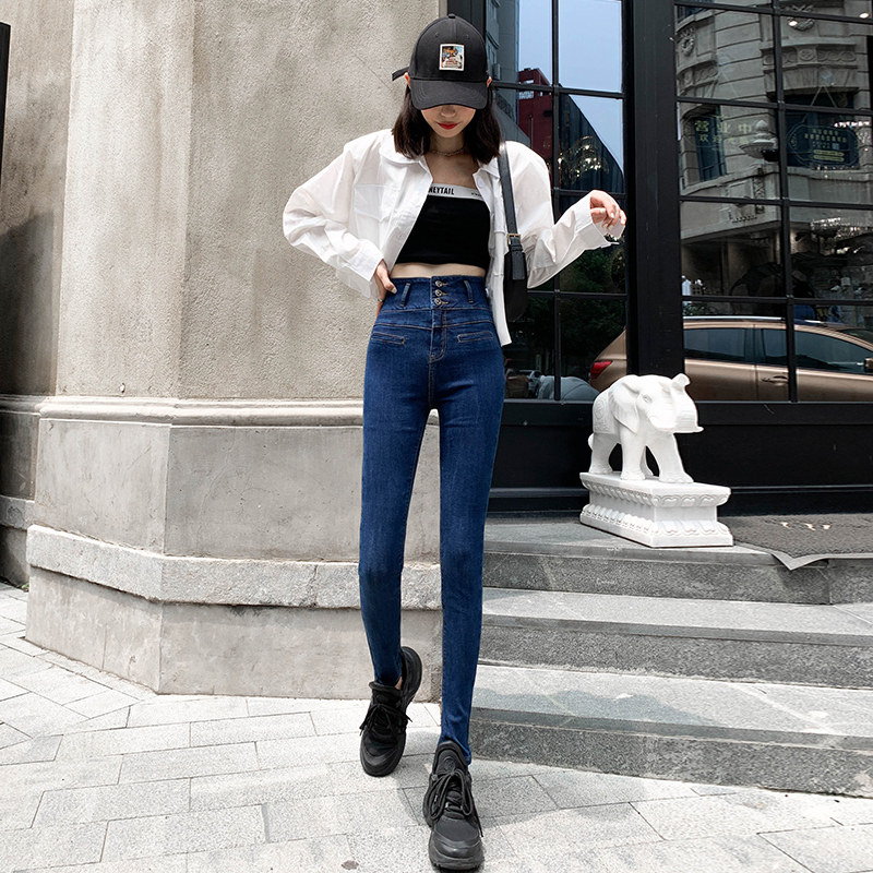 Jeans women plus plus plus thick autumn and winter pipe pants outside wear ultra-high waist slim cotton pants tight pencil pants