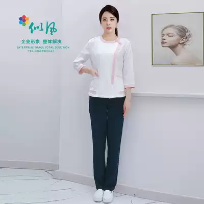 White collision powder three-point sleeve navy blue pants White collision powder three-point sleeve white pants White collision powder three-point sleeve navy blue skirt White collision powder three-point sleeve white skirt