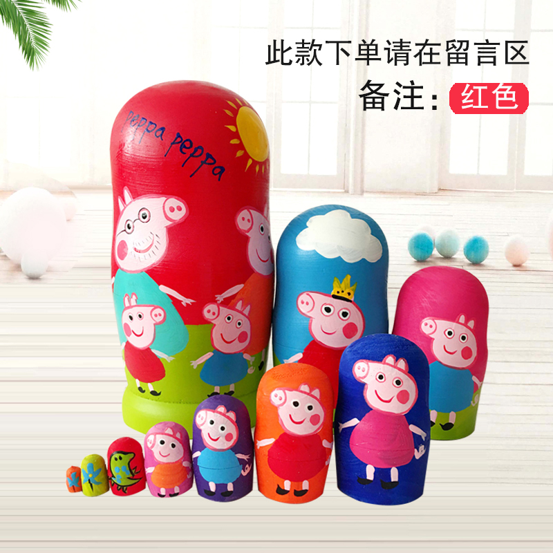 10 Floors Russian Jacket Toys Small Pig Cartoon Pure Hand Painted Pattern Wooden Children's Festival Gift Creative Furnishing