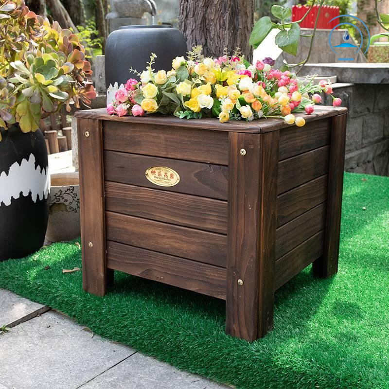 Anti-corrosion wood flower box square carbonized solid wood flower pot balcony outdoor garden planting vegetable box extra large tree planting