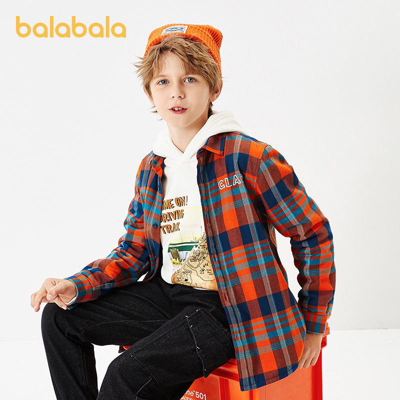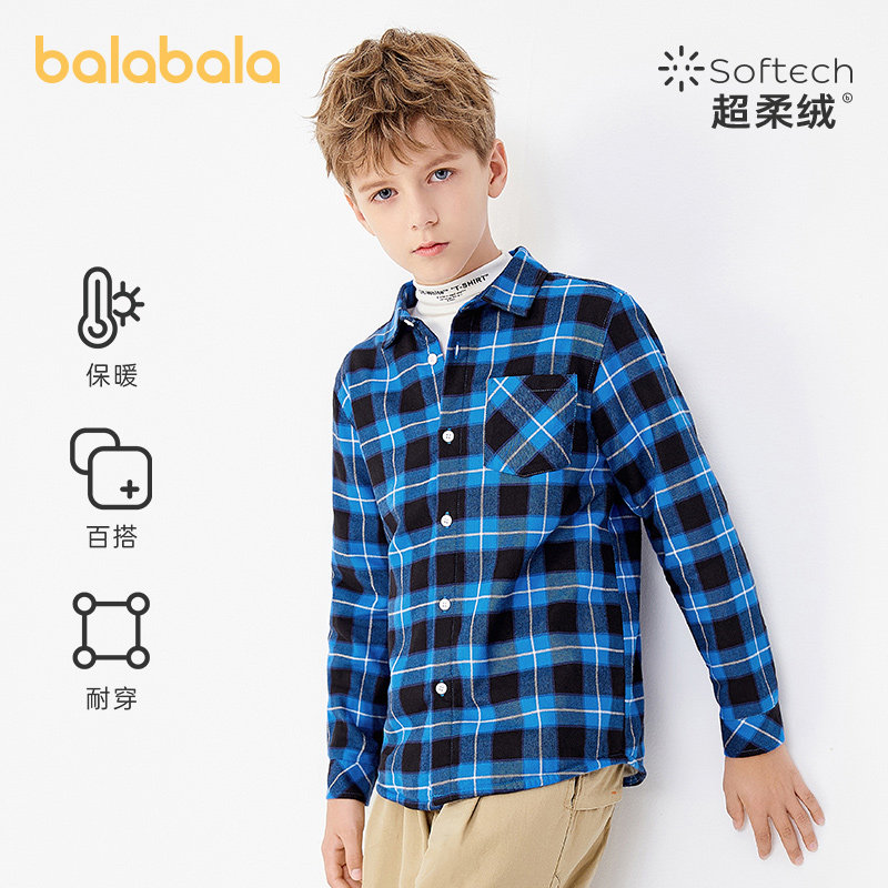 Barabala boys shirt children's shirt long sleeves winter coat in the big boy plus velvet plaid top tide jacket inner