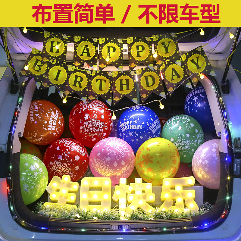 Car trunk surprise net red happy birthday decorations decoration boys and daughters cartoon balloons one year old creative