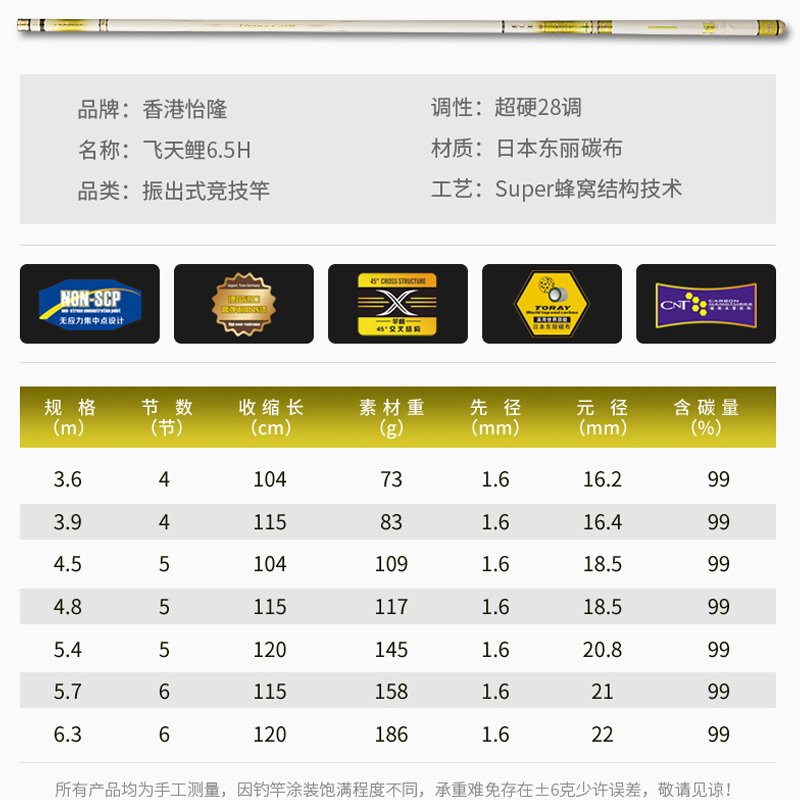 Hong Kong Yilong flying carp 6 5H black pit rod fishing rod competitive rod fishing rod platform fishing rod super hard carp rod flying fishing rod