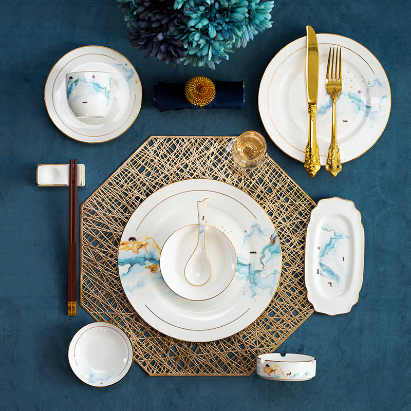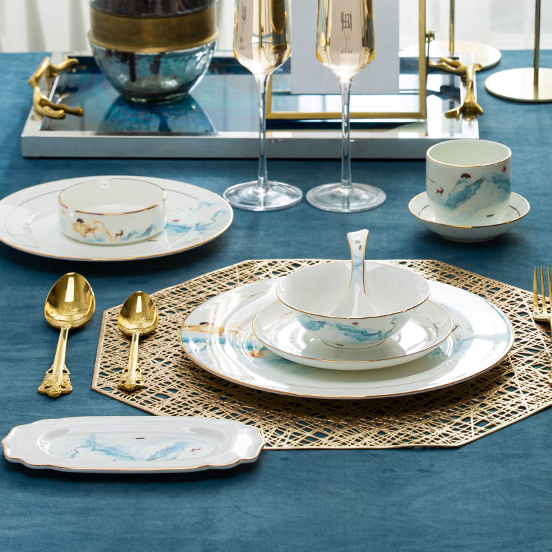 Chopsticks Rest (Brocade Rust Blue Hotel Version) Tableware Set 10 Pieces Set (Brocade Rust Blue Hotel Version) (Do Not Take) Ashtray (Brocade Rust Blue Hotel Version) Phoenix Tail Spoon (Brocade Rust Blue Hotel Version) Water