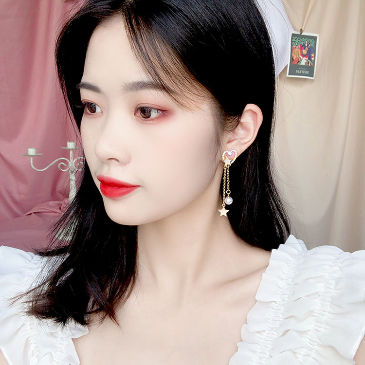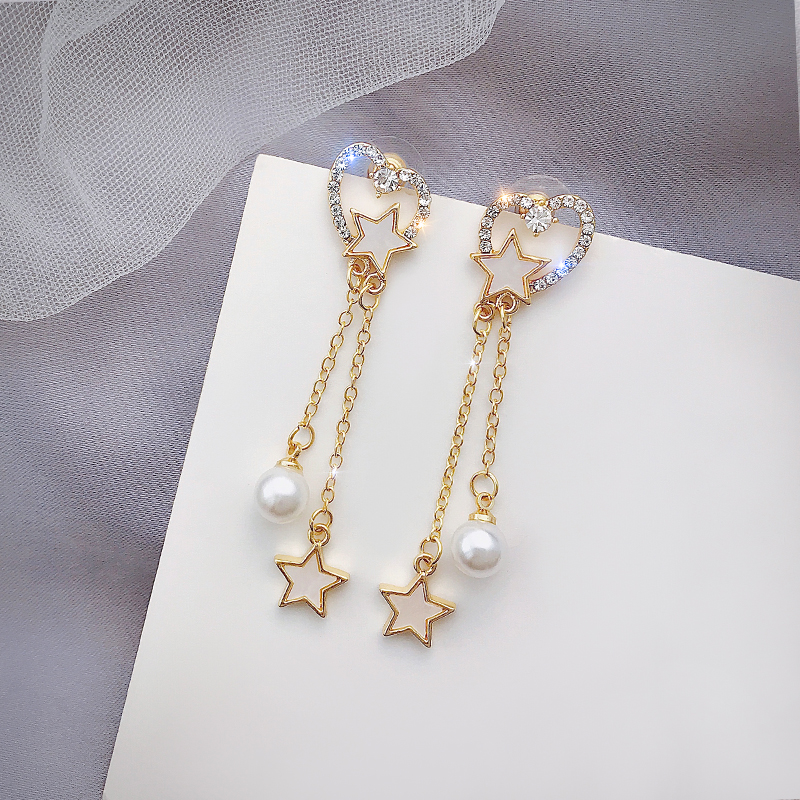 925 Silver Needle Love Star Stream Suearring Female 2021 New Tide Korean ear nail temperament crash