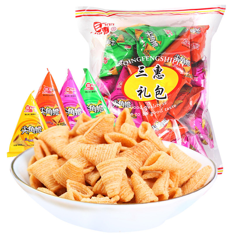 Three-inclusive sharp corner crisp corner pot barnet red zero food triangular crisp small packaged puffed food 500g bulk whole box