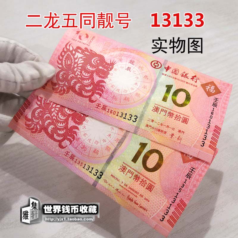 Macao Zodiac commemorative banknotes No 47 Erlong banknotes 13133 tail five Tongo No. RMB10 pairs of banknotes in physical notes