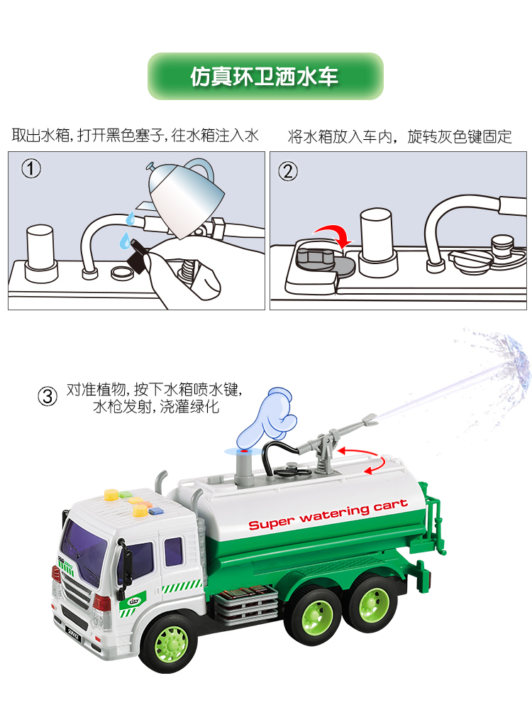 Sprayable sprinkler truck Sanitation garbage truck (2 types, send fire extinguisher doll road sign