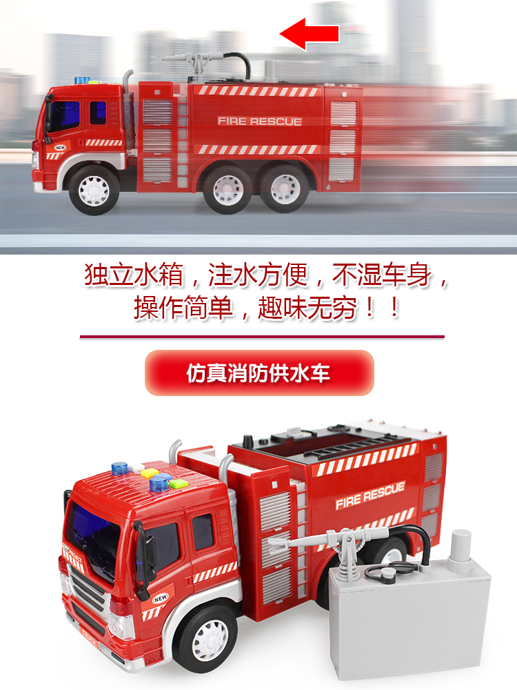Excavator fire truck can spray water lift boy car model crane inertia children's toy girl gift