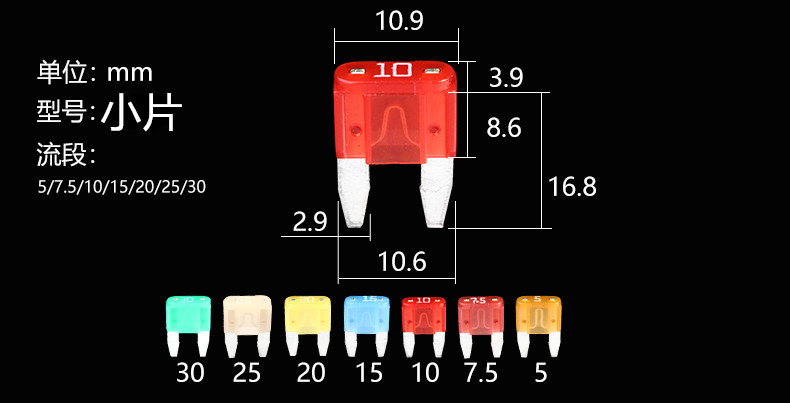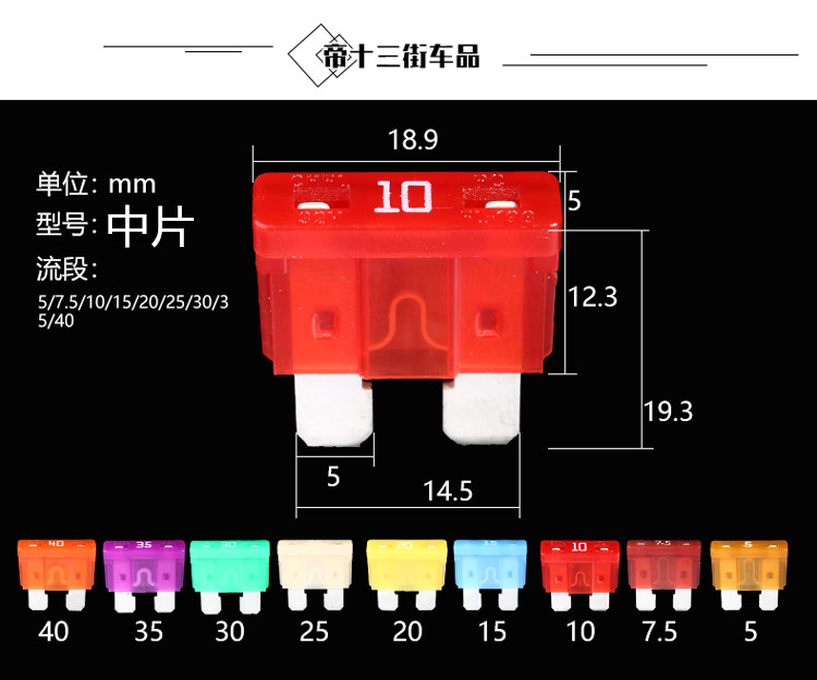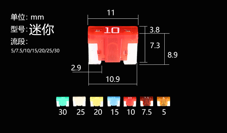Car fuse medium small mini fuse insert 10A 15A20a3 types of fuse box inserts