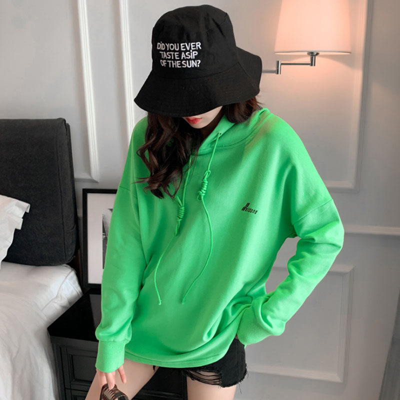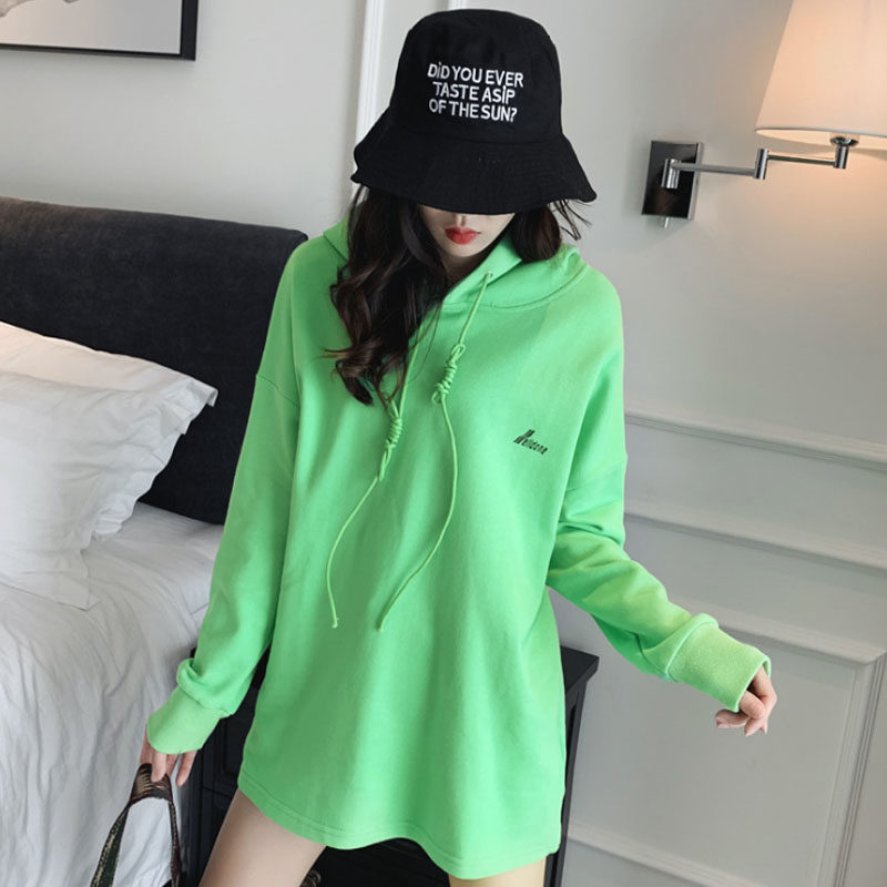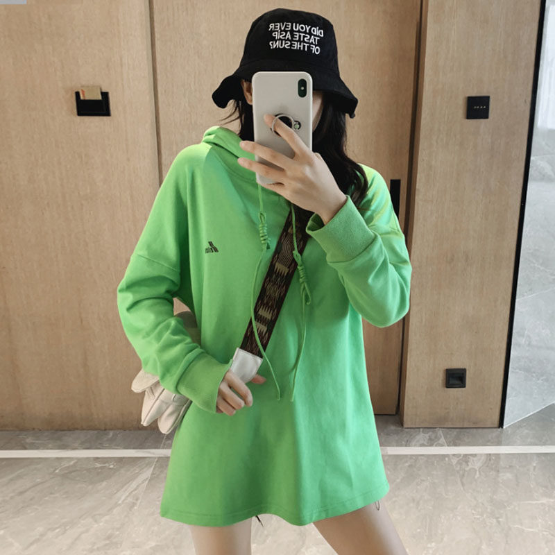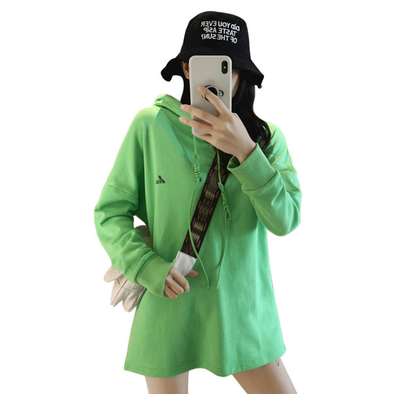European goods new avocado green sweater women's 2020 autumn and winter Korean version loose net red mid-length version long-sleeved hooded top