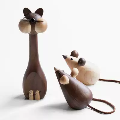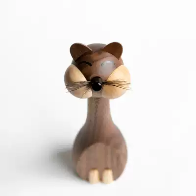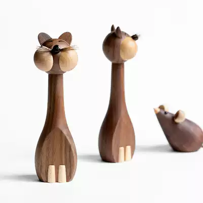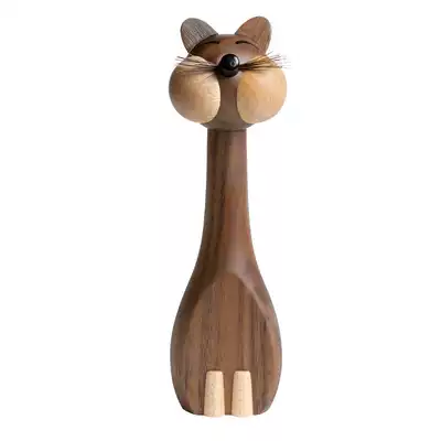 Kitty cute Nordic decoration decoration solid wood craft jewelry wooden animal doll personality gift soft dress