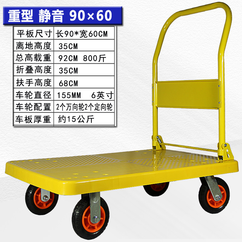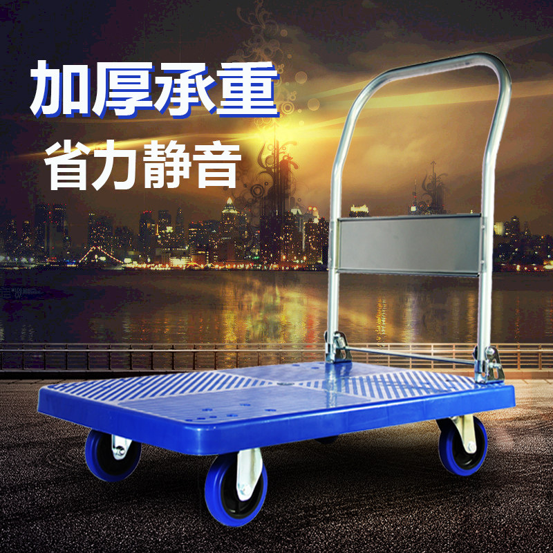 Flat truck pushcart TRUCK FOLDING SMALL CART PULL-GOODS CARRYING CAR PORTABLE HOME LIGHT TROLLEY MUTED FOUR WHEELS