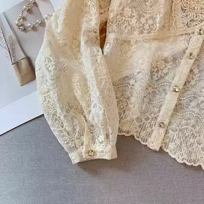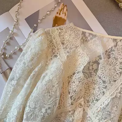 2021 new French long-sleeved lace chiffon bottoming shirt with shirt top female design niche spring and summer