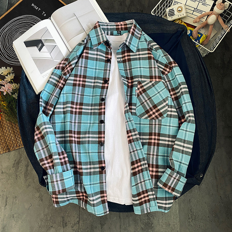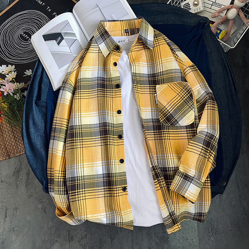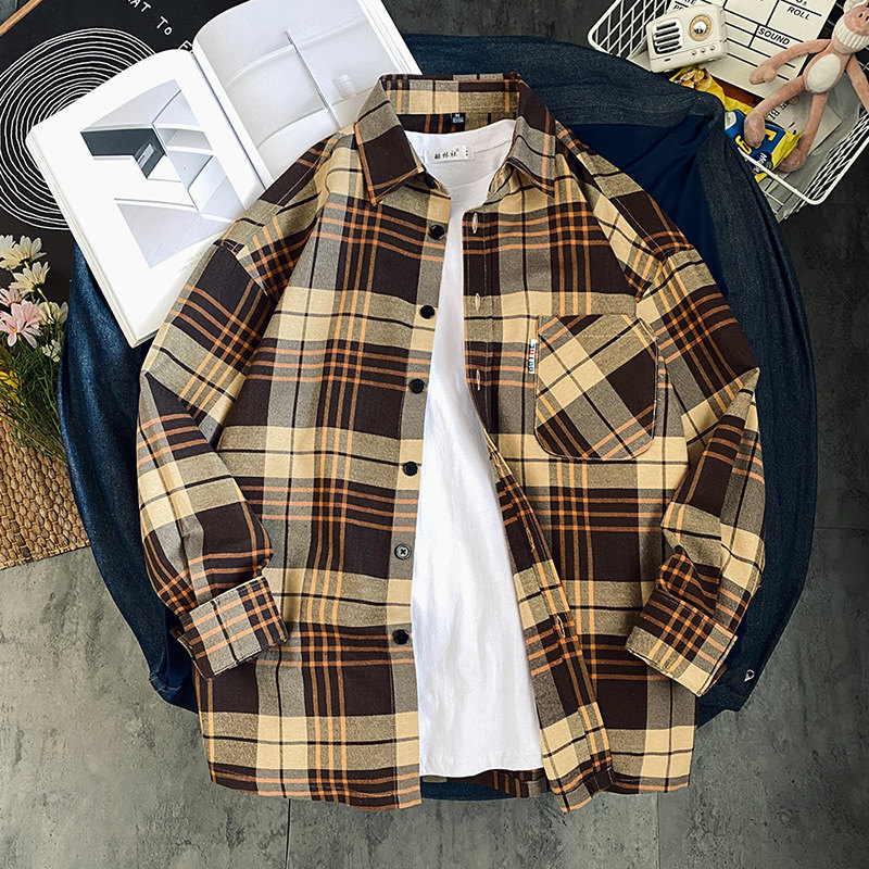 Boys plaid shirt autumn clothes middle-aged children 12-15 years old Korean version handsome trend spring and autumn long-sleeved shirt men's clothing