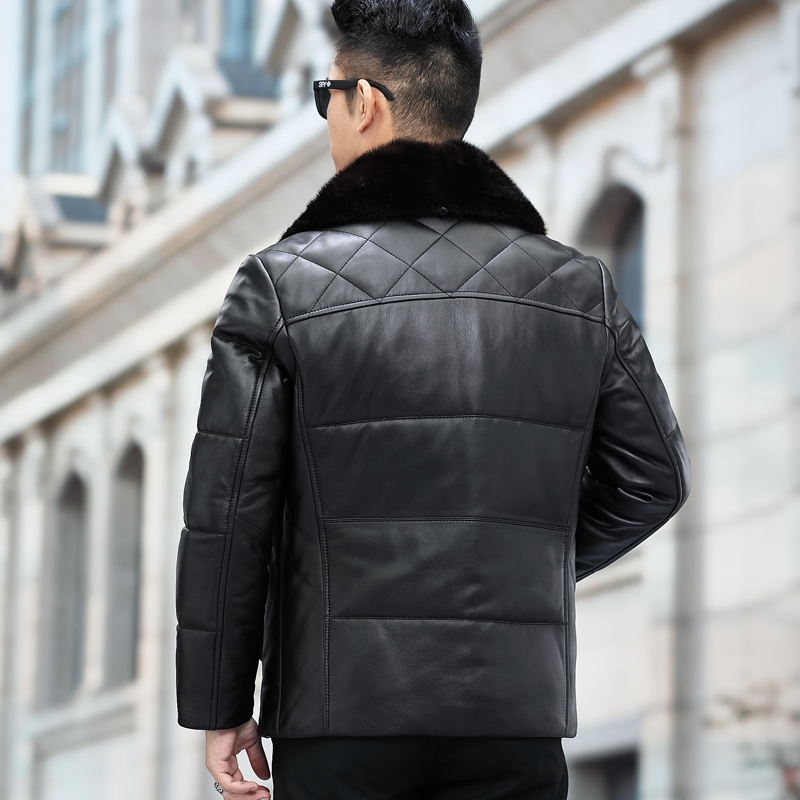 Haining genuine leather jacket men's middle-aged and elderly mink lapel sheepskin down jacket mid-length version dad large size jacket winter