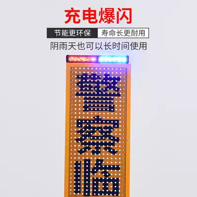 Traffic red and blue flashing warning light Telescopic temporary inspection card Duty inspection prompt sign Safety prompt telescopic card