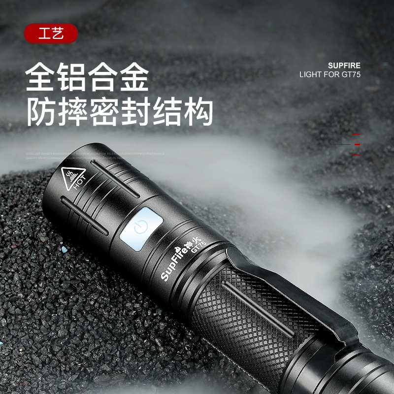 God Fire Official Flagship GT75 Flashlight Small Portable Bright Light Ultra Bright 5000 Charged Outdoor Long Shot Long Renewal Meter