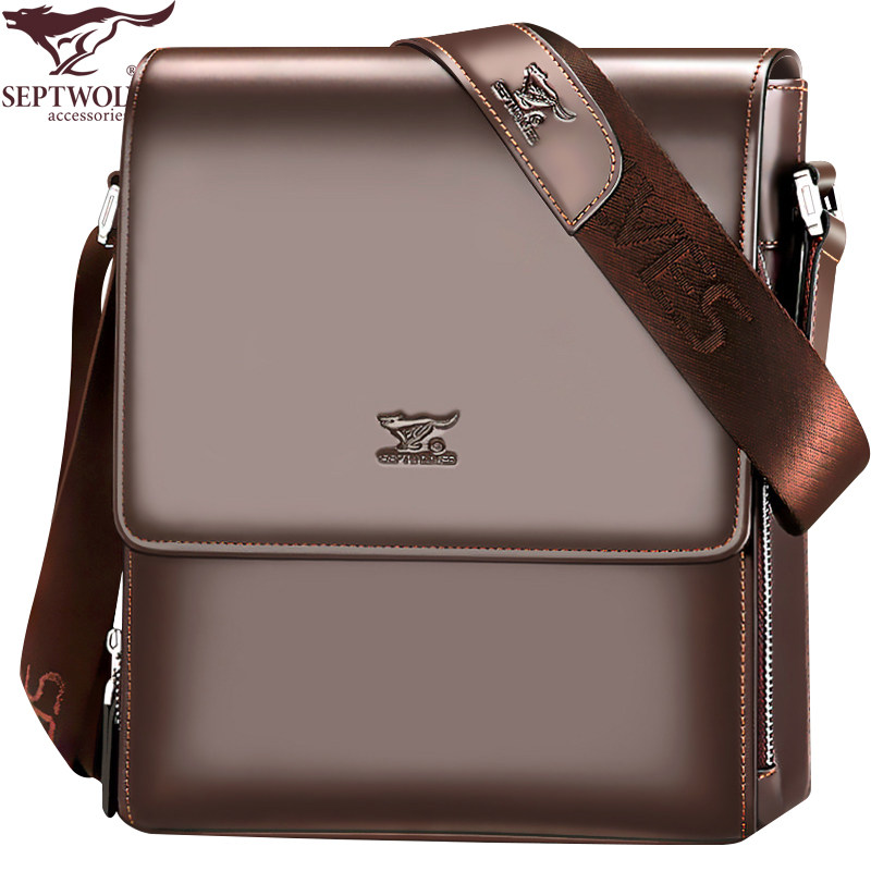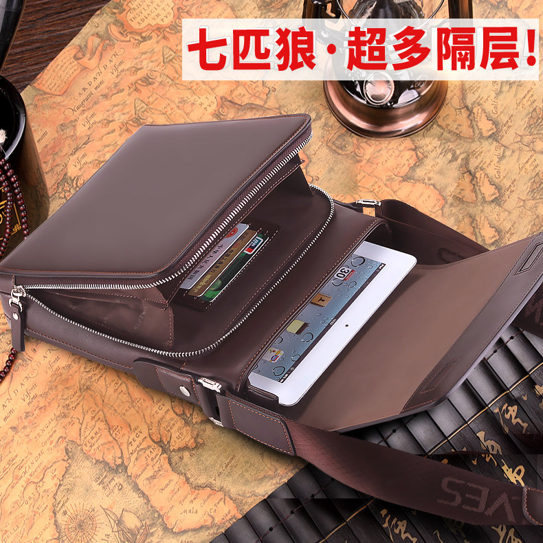 Seven Wolves Genuine Leather Men's Bag Single Shoulder Bag Large Capacity Bull Leather Bag Business Slant Satchel Bag Men's Bag Casual Little Backpack-Taobao