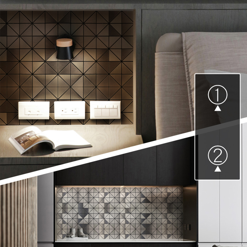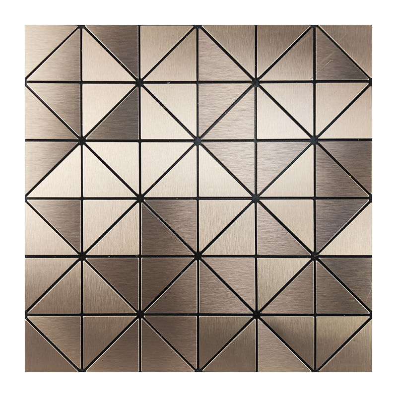 Triangular beige metal stainless steel aluminium plastic plate modern minimalist mosaic wall with self-adhesive background wall tiles