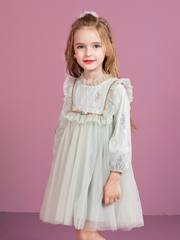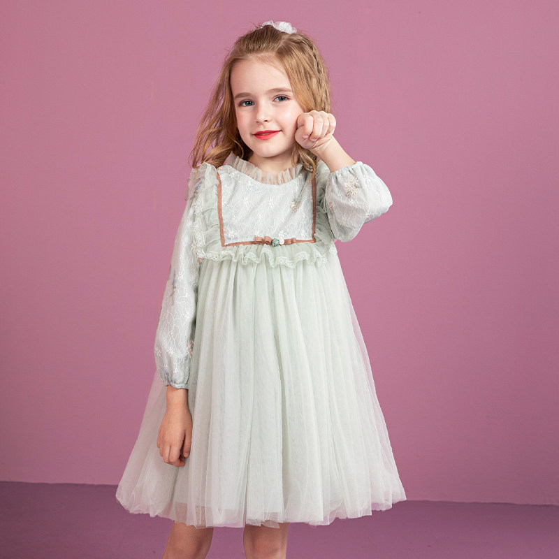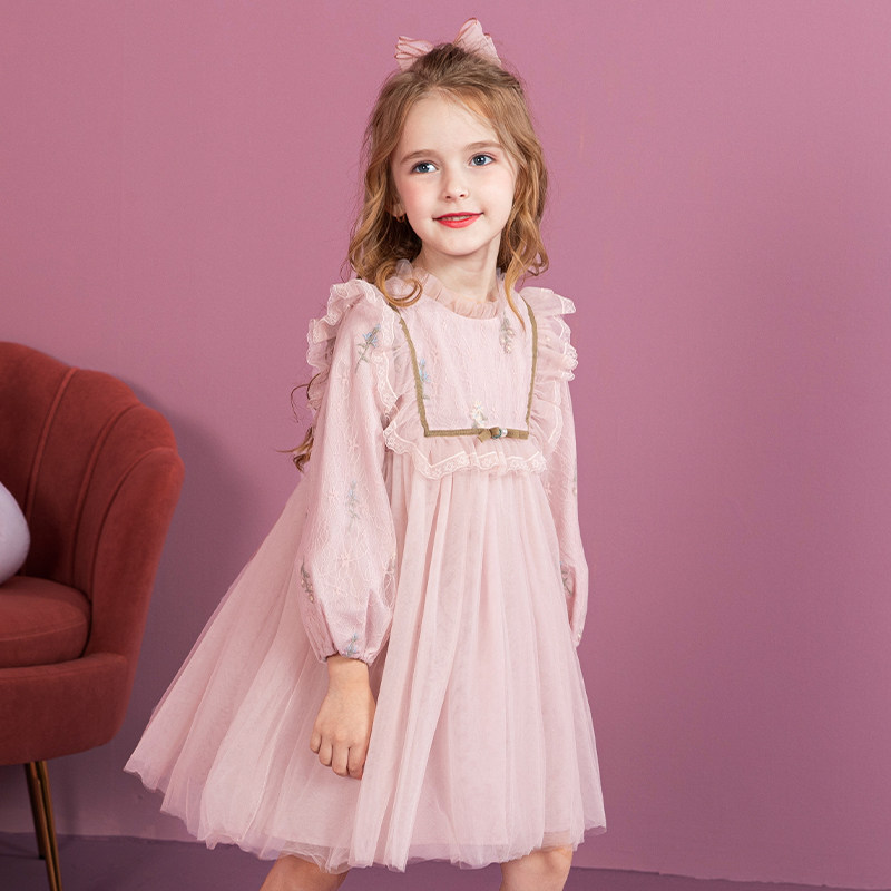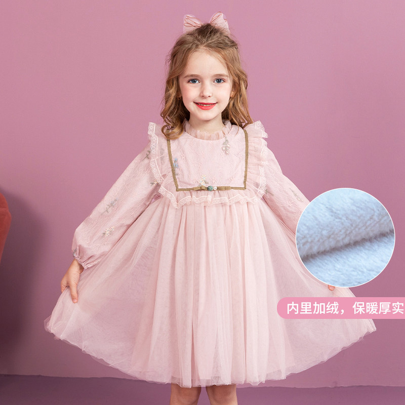 Girls' dress spring and autumn Western Lolita skirt autumn and winter children's puffy gauze plus velvet princess dress