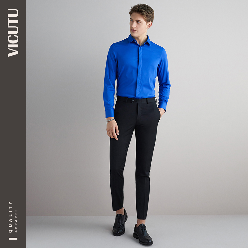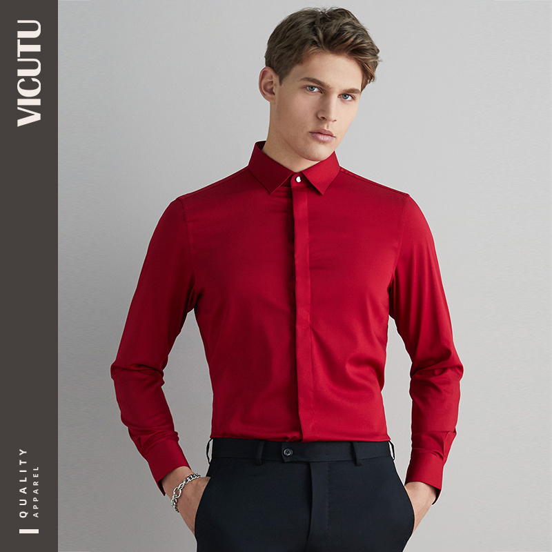 VICUTU Men's long sleeve shirt Peach embroidery wedding series Groom wedding long sleeve shirt