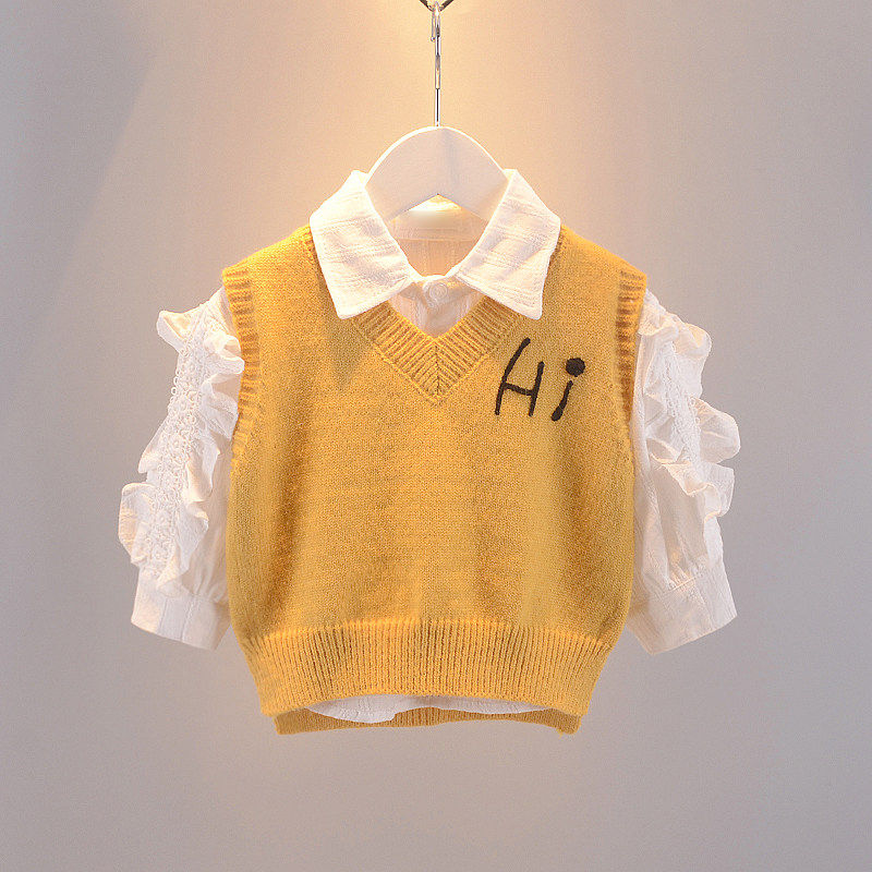 2021 Girl Yang Pie Baby Hair Line Shirt Lifted Lace Sleeve Girl 2 - piece sets in autumn