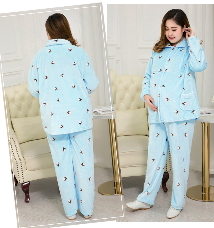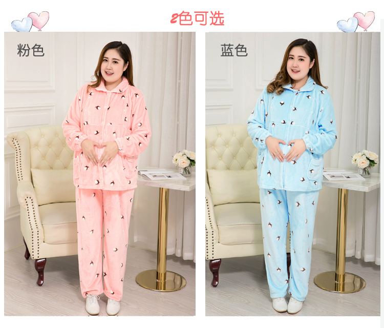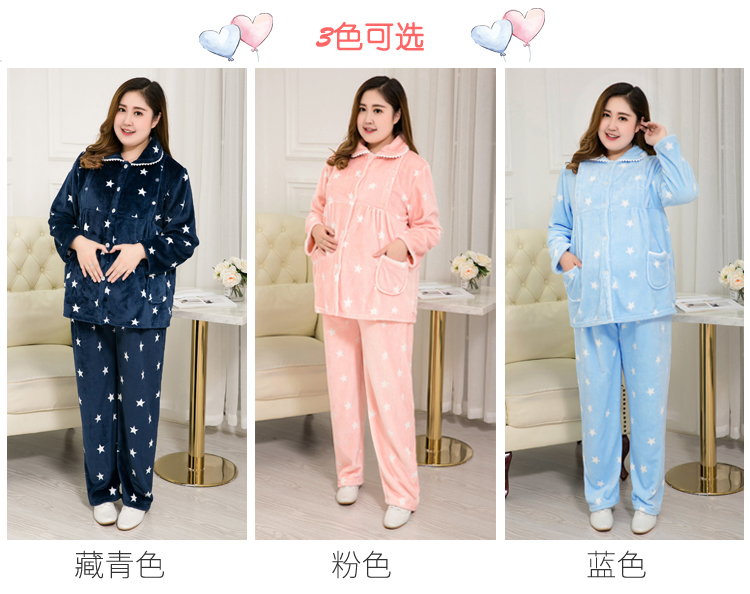 Flannel moon clothes Autumn and winter clothes large size 200kg 230kg 300kg plus velvet nursing clothes Pregnant women pajamas Home clothes