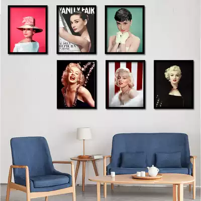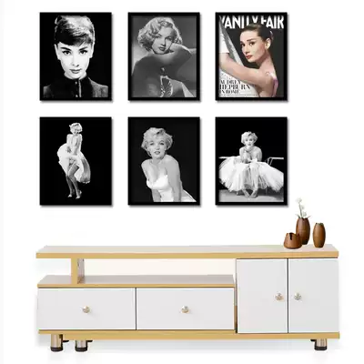 Black and white nostalgic small mural Audrey Hepburn Marilyn Monroe decorative painting Bar bedroom wall decoration hanging painting